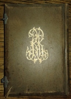 Sötét bőrkötés, fedőlapján felül jobbra gyöngyház alapon fémből való kettős kőtábla, alul stilizált tóra. A lapok szélei aranyozottak. Kapocs letörve.