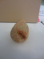 Tömör, vastag falú váza formájú. Égetett agyag rúdvégdísz, rajta zöld fajanszozás nyomaival.
