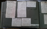 Hegedűs Béby énekesnő fellépéseiről írt kiritikák, újságcikkek, plakátok, meghívók, levelek albumba ragasztva -