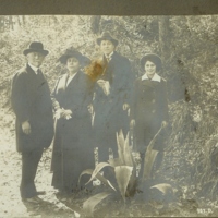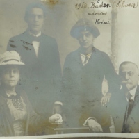Abbáziában készült fotó a Munkácsi család arcképcsarnoka I. albumból. A képen Schleifer Zoltán és neje, Munk Gábor és neje valamint Munkácsi Bernát. A…