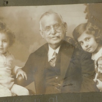 Fotó a Munkácsi család arcképcsarnoka I. albumból. A képen Munkácsi Bernát és felesége Paula, valamint két gyermekük, Sándor és Noémi látható. A fotó…