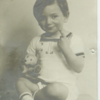 Schönberger Bandika fotója a Munkácsi család fotóalbumából. Hátoldalán a képeslap Munkácsi Bernátnak címezve, születésnapja alkalmából köszönti fel a…
