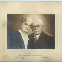 Munk Hermina és Löwy Vilmos ötvenedik házassági évfordulójának emlékére készült fénykép a Munkácsi család fotóalbumából.