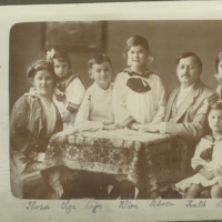 Fotó Munk Móricz családjáról a Munkácsi család fényképalbumából. A képen Ilona, Olga, Lajos, Klára, Móricz Kató, Lilly.