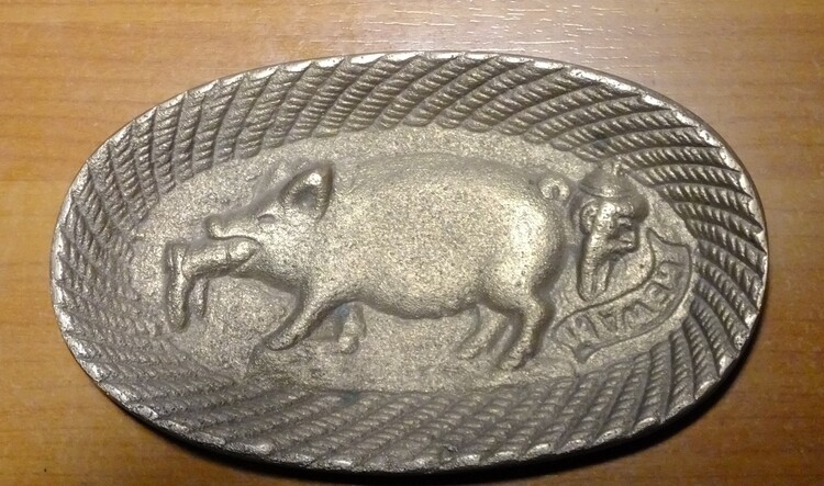 • ovális fém hamutartó, öblében a középkorra visszavezethető "Judensau" ábrázolással.